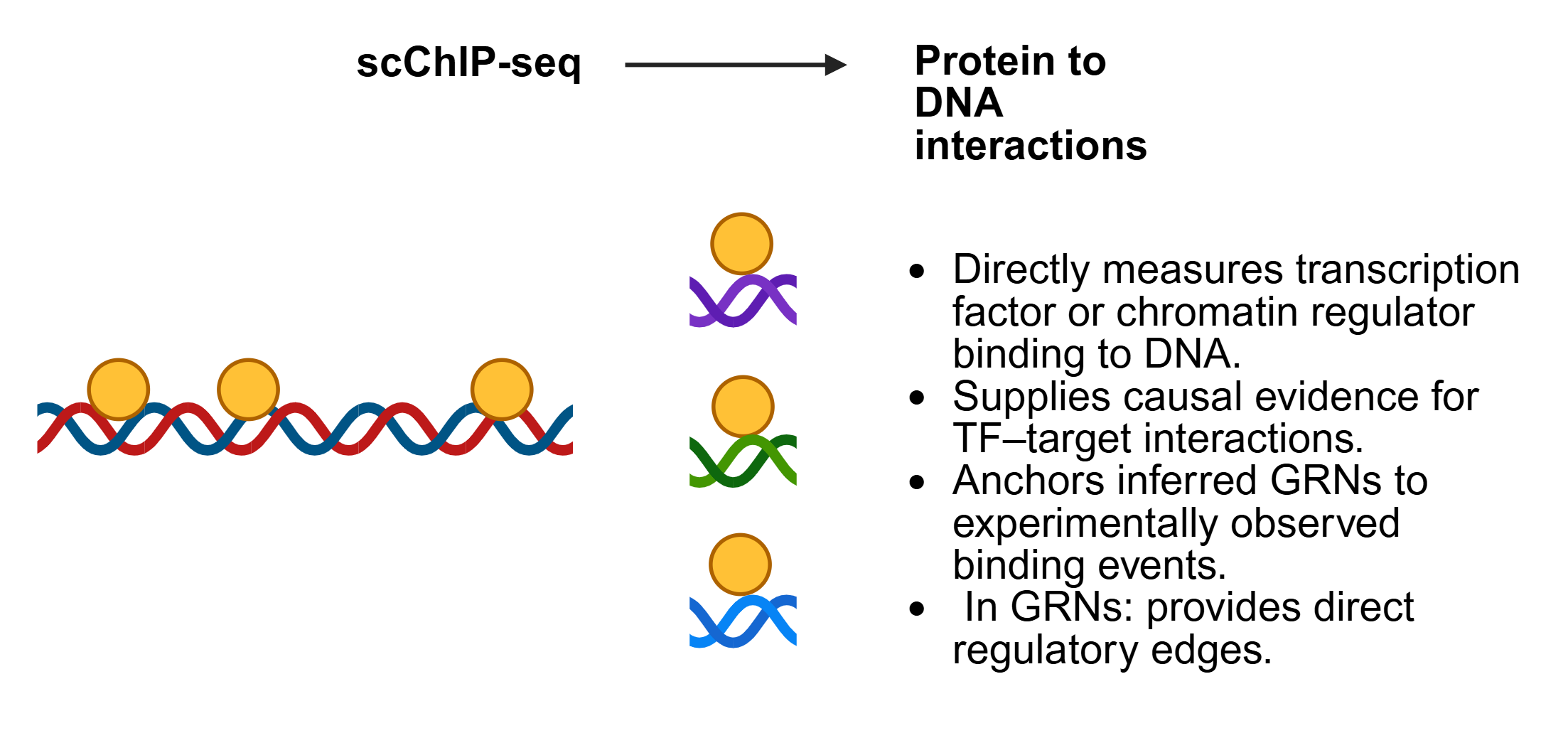 SC-MO-GRN-DB includes multiple single-cell data modalities including scRNA-Seq, scATAC-Seq, scChIP-Seq, scHi-C, and single-cell DNA methylation datasets as well as single-cell perturbation data with scCRISPR-Seq. In addition to these single-cell resources, we provide curated gene interaction data from ChIP-Seq, gene knock-down and knock-out experiments to test, benchmark and validate single-cell GRNs.